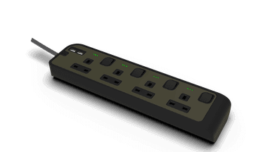 4 Outlet Power Strip with 2 USB-A Ports with 10Meter Cord Midnight Green